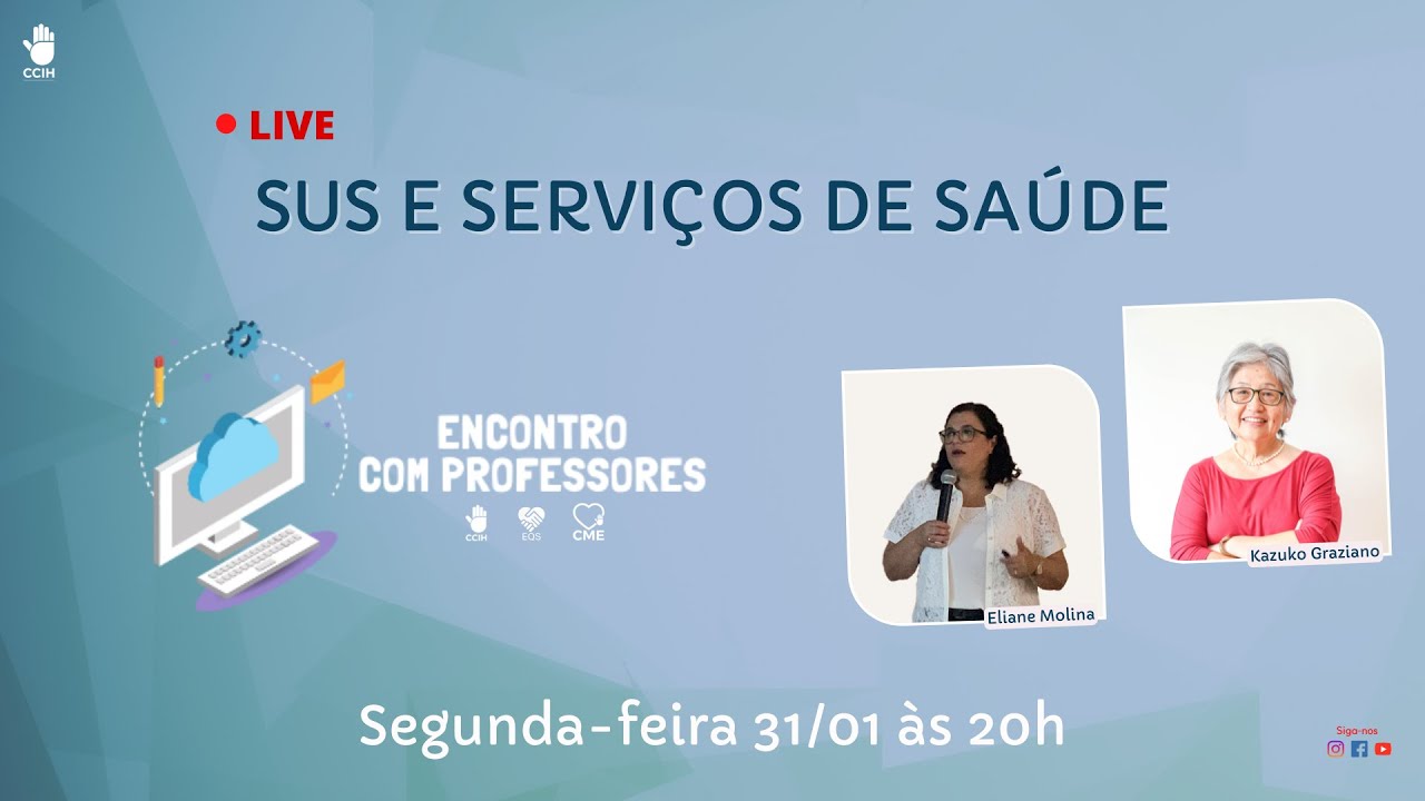 Vamos receber a professora Eliane Molina para discutir a importância e o papel do SUS nos serviços de Saúde e como o CME se encaixa nesse cenário. Moderação com Prof Kazuko e Laura Czekster. #SUS #saúdepública #cme #reuso #remunaração #pacotes